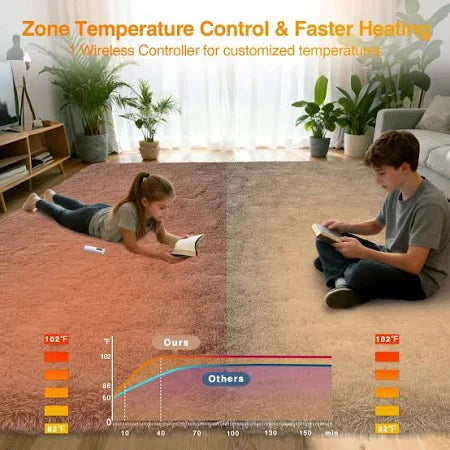 Electric Heating Carpet Area Rug Heater Floor Mat Timer Fast Warm Up Living Room Office 5' x